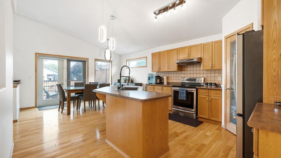 Beautiful Cab-Over in Lindenwoods! Welcome to this stunning 1,720 sq.ft. cab-over home, thoughtfully designed with modern updates & an abundance of natural light. Upon entry, you re greeted by a welcoming foyer connected to the laundry room for added convenience. The main level boasts vaulted ceilings & large windows, creating a bright, airy atmosphere throughout the living room, family room with cozy gas fireplace, dining area, & spacious eat-in kitchen with a large island. Two bedrooms & a 4-piece bathroom complete the main level. The private upper level is dedicated to the large primary suite, complete with a walk-in closet & 4-piece ensuite. The fully renovated basement offers a fantastic entertainment space with a rec room, wet bar, 4th bedroom, custom 3-piece bathroom, & a utility room. Additional highlights include a double attached garage, multi-level deck with jacuzzi, landscaped yard, new hot water tank (2025), central A/C (2024), shingles (2023), re-paved driveway (2023), high-efficiency furnace (2022), & home security wiring.